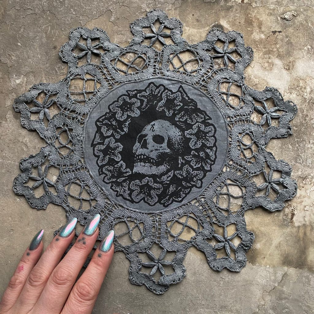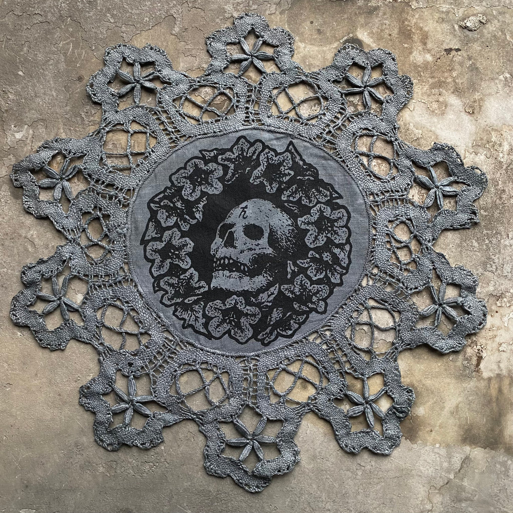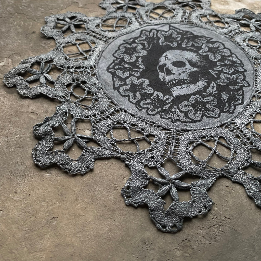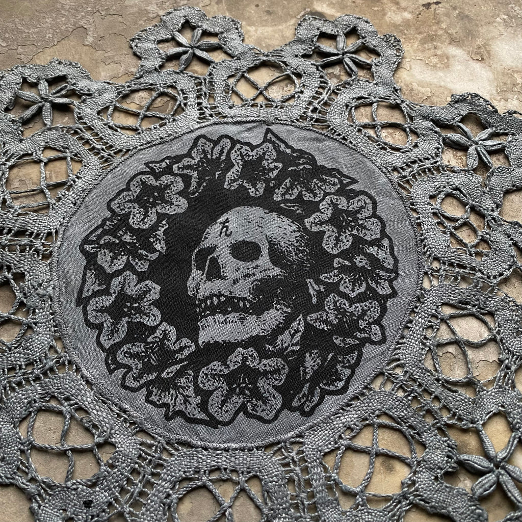 • Henbane Wreath small round altar cloth in Ice Crystal, one-of-a-kind