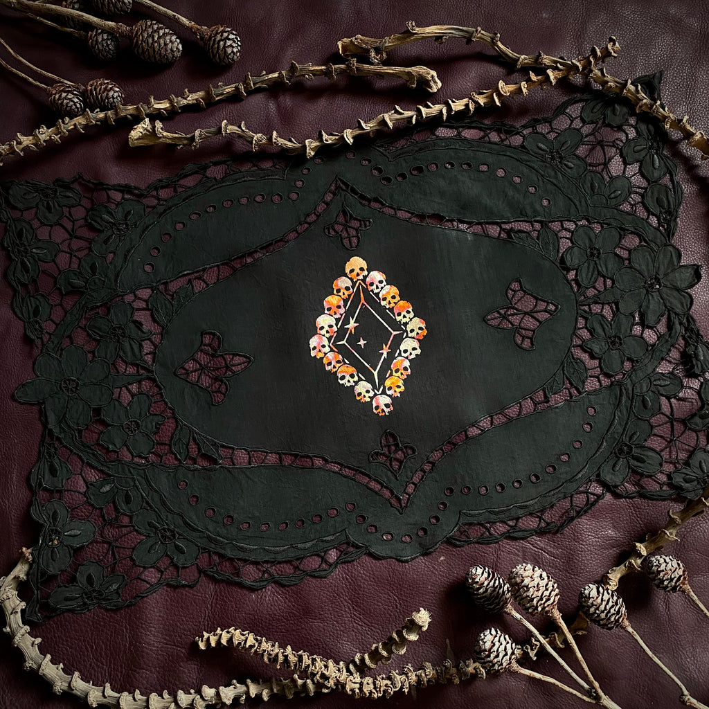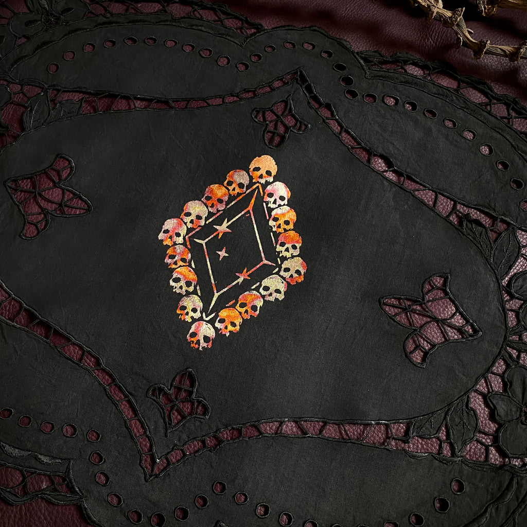 Death Diamond altar cloth in Fire Foil on Black, one-of-a-kind