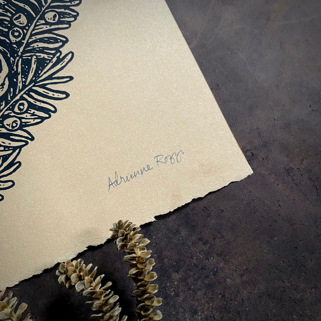 - Printed with black ink on kraft-toned (tan) Stonehenge archival paper. Please refer to last photo for most accurate portrayal of paper color.